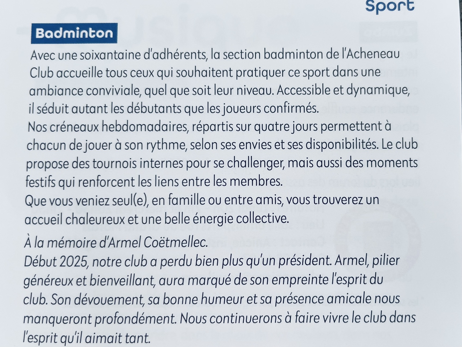 Acheneau Club - Badminton